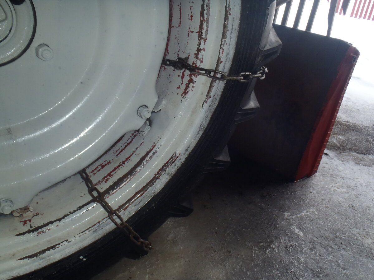С установлением снежного покрова и скользкой наледи, проходимость тракторов, без полного привода заметно снижается. В основном рассмотрим трактора Т-16, Т-25, Т-40. Самоходное шасси Т-16, вообще обладает уникальной способностью, передвигаться по любому бездорожью в теплое время года. Но все эти удивительные качества пропадают с появлением глубокого твердого снега. Так же, буксуют и с трудом передвигаются по снежной целине, без переднего привода, Т-40, Т-25. Если трактор оборудован лопатой для уборки снега, без цепей на ведущих колесах, не обойтись, не поможет даже блокировка. Многие владельцы тракторов опасаются ставить цепи, боясь повредить диск и шину. Хотя и соглашаются, что грести снег без цепей малоэффективно, приходится работать на больших скоростях, чтобы ка-кто пробивать снежные заносы. Много лет я использую трактор Т-25 для очистки нашей улицы от снега, ЖКХ просто не успевают очистить весь поселок вовремя. На каждое колесо одеваю по четыре цепи, соединяю их просто болтами. Пон