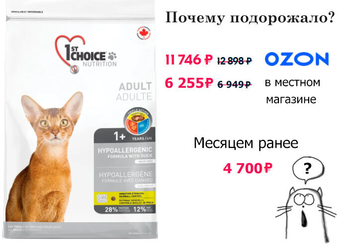Больше мы похоже не увидим таких цен на корма, которые были раньше. Вся эта ситуация коснулась всей зооиндустрии. У части населения останется возможность покупать корма, но покупательский спрос безусловно спадет, о чем уже заявляют владельцы зоомагазинов. Причины повышения цен на импортные корма: - Логистика. Крупнейшие контейнерные перевозчики остановили поставки в Российские порты. Совокупность этих компаний на нашем рынке составляет 50%; - Валюта. Все товары приобретаются за валюту, а что с ней происходит мы регулярно наблюдаем; - Цены на бензин (то что касаемо наземных перевозок). Европейские власти не только способствовали повышению цен на бензин, но и значительно подняли налог на топливо. Те компании, кто остаются на плаву, поднимают цены на перевозку, а часть компаний попросту «вышли из строя»; - Давление на компании. Так же какая то часть компаний отказалась от поставок из-за «политических убеждений». Причины повышения цен на отечественные корма: - Сырье. Многие наши заводы з