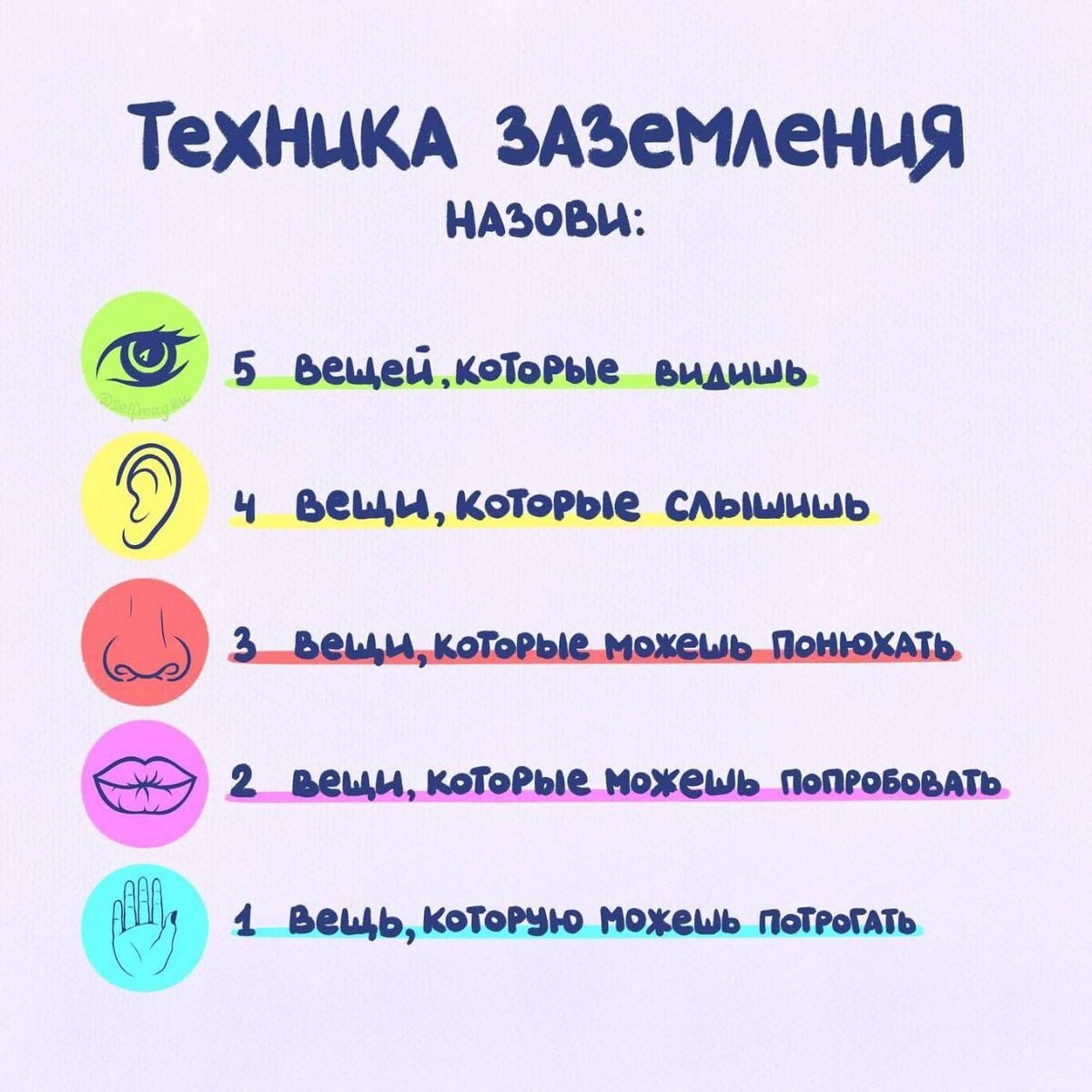 Эта техника полезна при тревоге, сильном страхе, беспокойстве Она помогает вернуться из неуправляемых эмоций в реальное «здесь и сейчас», сконцентрировавшись на реальном. Не забудьте подписаться на канал! t.me/astranika666