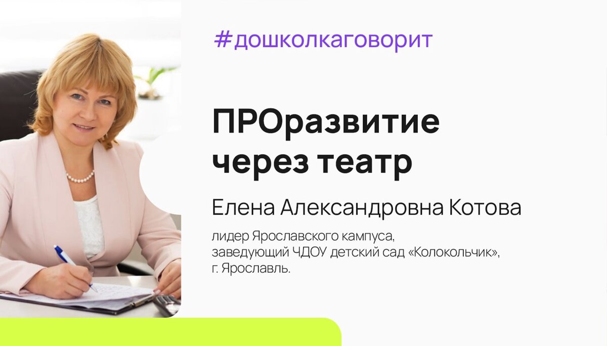 Неделю назад прошел день театра. О театре для дошкольников рассказывает Елена Котова, лидер Ярославского кампуса Университета детства, заведующий ЧДОУ детский сад «Колокольчик». Нужно ли компетенции будущего развивать уже с детства? Не удивляйтесь! Но сегодня для человека уходят на второй план навыки, которым можно научить и которые можно измерить: набор текста на компьютере, вождение автомобиля и др. В будущем, нам потребуется мышление организатора, мотиватора, создателя, творца, стратега – и все это в одном лице! В чем же смысл? При чем тут театр? Для детей театр – веселая и интересная игра. Каждый ребенок в театрализованной деятельности получает ценный багаж жизненно важных социальных навыков: умение подать себя, быть уверенным и не теряться в сложных ситуациях. В нашем детском саду мы не ставим задачу вырастить будущих театральных звезд. Ключевая идея - кем бы ни стали в будущем наши воспитанники, яркие детские впечатления, основанные на интересе, помогут им в выборе жизненн