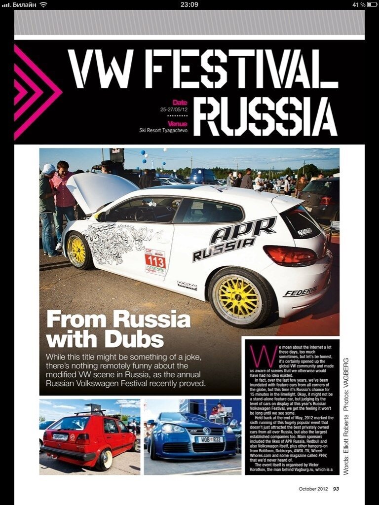 Как-то в 12 году я получил очередной журнал VW Performance по подписке (да, тогда подписка на что-то прилетала тебе в почтовый ящик), где оказалось несколько разворотов про наш VW Festival - тогда он еще назывался именно так. Сложно описать те эмоции и гордость, которые я испытывал в тот момент. Для тех, кто не в курсе, VW Performance это как Форбс, только по теме VW в мире. И вот я тут случайно наткнулся на сканы. Пусть полежит тут, на память, а с вас лайк за крутость события.