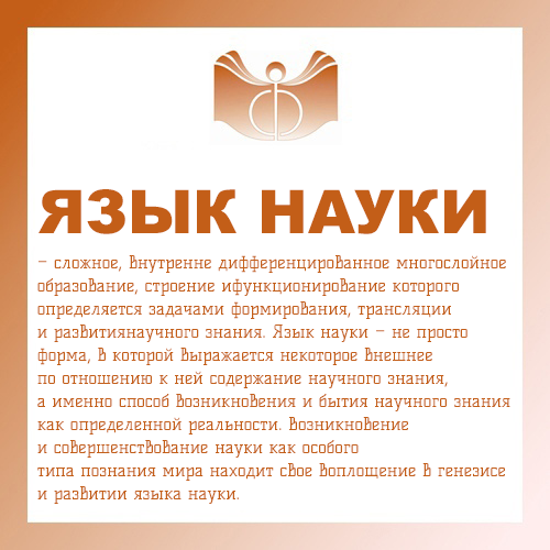 ЯЗЫК НАУКИ – сложное, внутренне дифференцированное многослойное образование, строение и функционирование которого определяется задачами формирования, трансляции и развития научного знания. Язык науки – не просто форма, в которой выражается некоторое внешнее по отношению к ней содержание научного знания, а именно способ возникновения и бытия научного знания как определенной реальности. Возникновение и совершенствование науки как особого типа познания мира находит свое воплощение в генезисе и развитии языка науки. Формирование науки и рационально-теоретического сознания связано с процессами семиозиса, в результате которых претерпевает глубокие изменения исходная семантика донаучного языка. Последняя характеризуется синкретическим единством фиксации некоего «смыслового ядра» с функцией его применения в конкретных ситуациях. Рационально-теоретическое сознание реализует установку на расщепление этого синкретического единства, на выделение в актах рефлексии над стихийным «естественным» языко