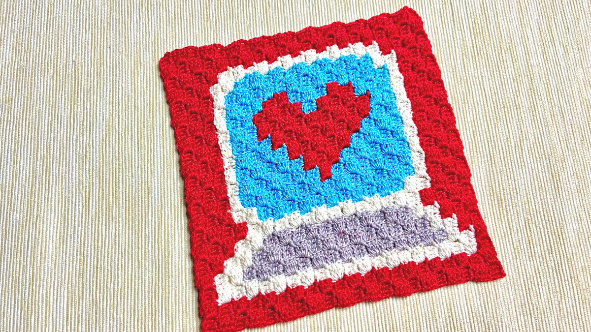 В этом мастер-классе хочу познакомить с процессом вязания крючком в технике С2С подставки с изображением ноутбука с сердечком на его экране.