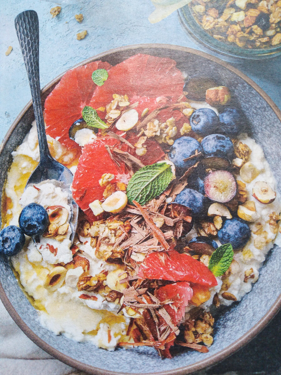 Предлагаю вашему вниманию ещё один рецепт с красным апельсином. Для его приготовления потребуется всего лишь 10 минут. Ингредиенты : - 150 гр сыра рикотта - 1 красный апельсин - 2-3 столовые ложки мюсли - 2 столовые ложки меда - 0,5 чайной ложки ванильного сахара Для подачи : - ягоды голубики (подойдут любые свежие ягоды) - фундук - горький шоколад - листочки мяты 1. Смешиваем рикотту с 1 столовой ложкой мёда и анильным сахаром, выкладываем в миску и поливаем оставшимся мёдом. 2. Срезаем кожуру с апельсина, мякоть нарезаем кружочками и выкладываем на рикотту. Посыпаем мюсли, украшаем подсушенными на сковороде орехами, стружкой из горького шоколада, листочками мяты и ягодами и сразу подаём. Приятного аппетита. Надеюсь, что рецепт вам понравился. Благодарю за дочитывание. Буду рада видеть вас в числе моих подписчиков.