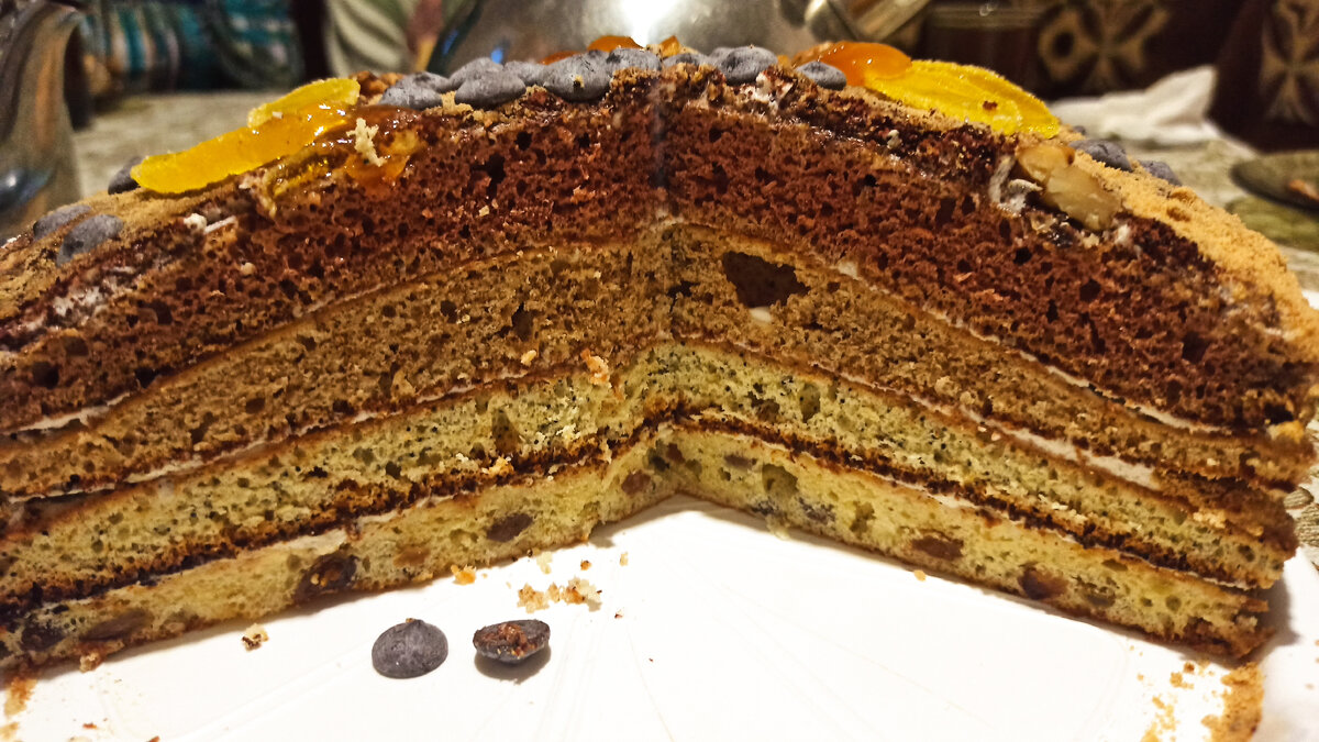 В интернете я встречала несколько его названий. Чаще всего он называется «Сказка», но я помню торт с таким названием из моего детства. Он был бисквит в виде полена и с масляным кремом. Рецепт торта, который я предлагаю вам, отличается. Мой протеже состоит из четырёх разных коржей, которые дополняют друг друга своими вкусовыми начинками. Разделяет коржи сметанный крем, а венчает его глазурь. Как видите, мало сходства. Поэтому я называю его как привыкла. Такой тортик очень понравится даже самым привередливым любителям сладенького.