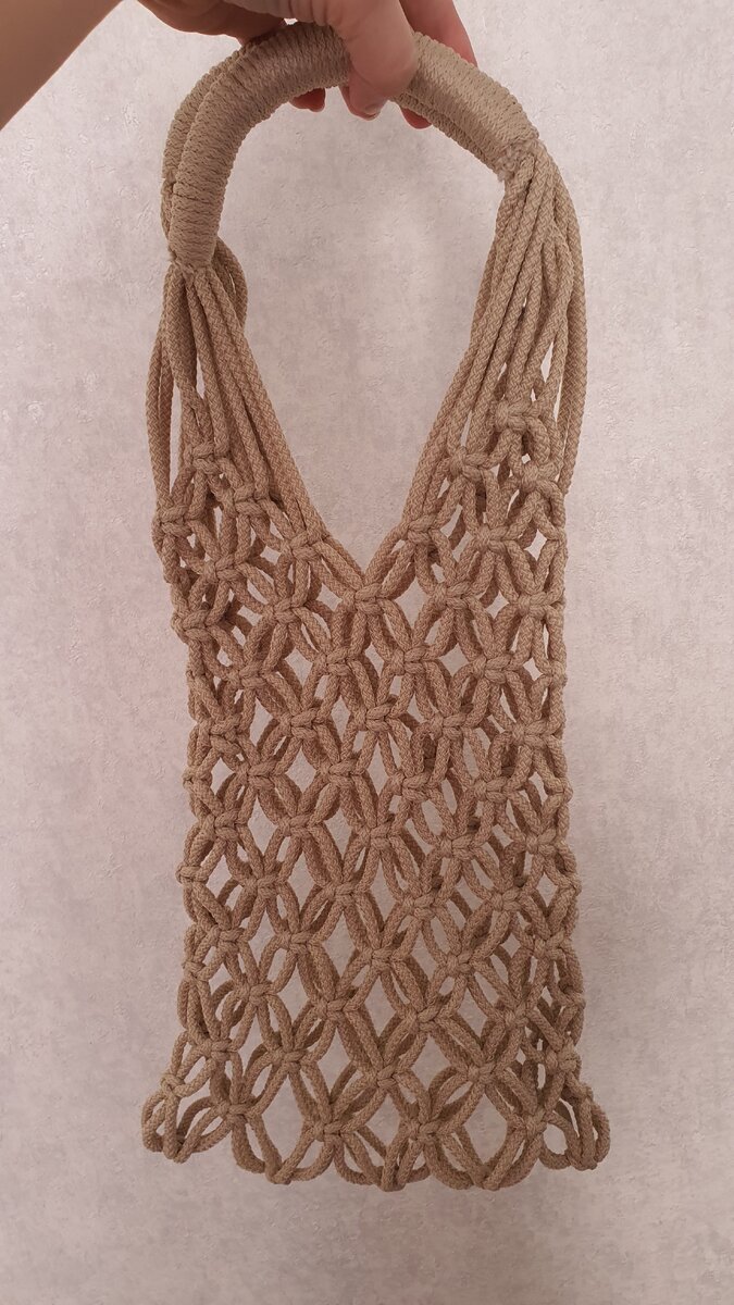 Всем-доброго времени суток, друзья! Хочу спросить, нравятся ли Вам техника макраме? В школе, на уроках труда, Вас обучали такой технике? На днях закончила вот такую авоську для покупок. У нас сейчас, такого плана авоськи и сумки, набирают большую популярность. И мне было тоже очень интересно самой попробовать сплести такую авоську. Результатом я осталась довольна. Конечно, над техникой ещё надо поработать, но для первого раза, я считаю, получилось отлично! 😁 Как Вам? Для этой авоськи я использовала полиэфирный шнур 5мм, цвет лен. Кстати, когда заказывала через интернет-магазин, то цвет на картинке мне показался немного светлее, чем он есть на самом деле, но да ладно, все равно смотрится очень эффектно. На уроках труда в школе нам, по-моему, показывали пару элементов плетения макраме, но на тот момент, как сейчас говорят, мне видимо, не зашло. А сейчас очень нравятся сумки, авоськи, топы в этой техники. Не знаю, совпадение или нет, совсем недавно мы купили самую обычн