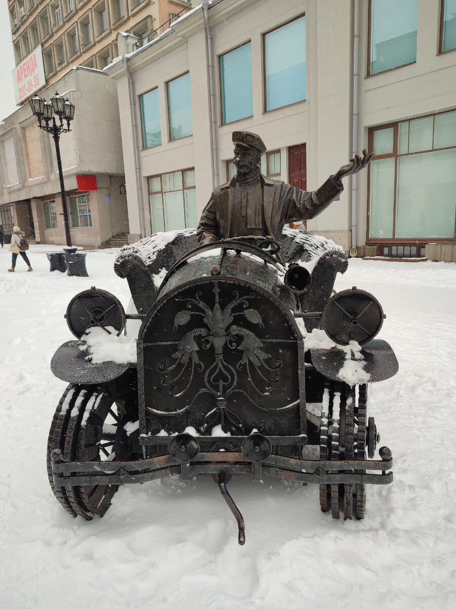 Сегодня гуляли с дочкой по Екатеринбургу, по городу где я не родилась, да, именно так, ведь я рождена в Свердловске. "Поехали, прокачу! "-предлагает водитель старинного авто. Люблю ритм большого города. Погуляли по центру, по Вайнера. Там много литых, оригинальных статуй. На улице настоящая зима, как будто и не апрель вовсе, а февраль. Видите у Бабы Яги нос "золотой", а это все его просто " трут", чтоб желание исполнилось. Камилла ей предложила кофе, но Яга вежливо отказалась. Мы девочки упёртые и нам погода не страшна. Поснимали в переходе музыкантов, мне понравилась композиция про метель уличную, а Камилле про сравнение погоды с человеком. Посидели в уютной кафешке. Кафешка в ТЦ, но мы же не могли хоть не надолго не заглянуть и не по шопиться. А потом увидели магазинчик сладостей, и не устояли. Набрали мармелада. Спросили разрешения на съёмку, очень уж нам понравилась атмосфера внутри, видео то же выложу на канале, музыку только придумаю под него😊. А этому мужчине совсем зам