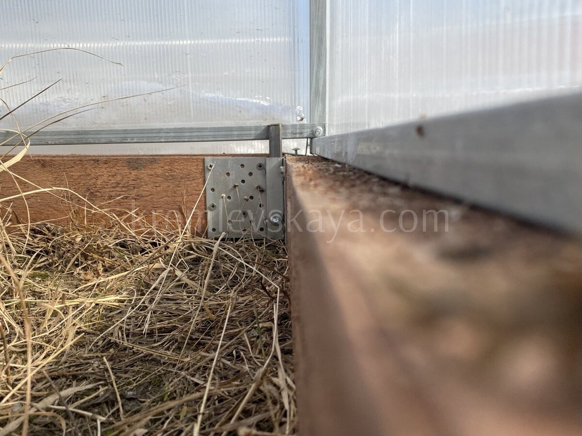 Во-первых, благодаря брусу внутрь теплицы не попадает холодный воздух с улицы. Как мы все знаем холодный воздух стремится вниз, и через щели попадает внутрь, что не благоприятно для растений.