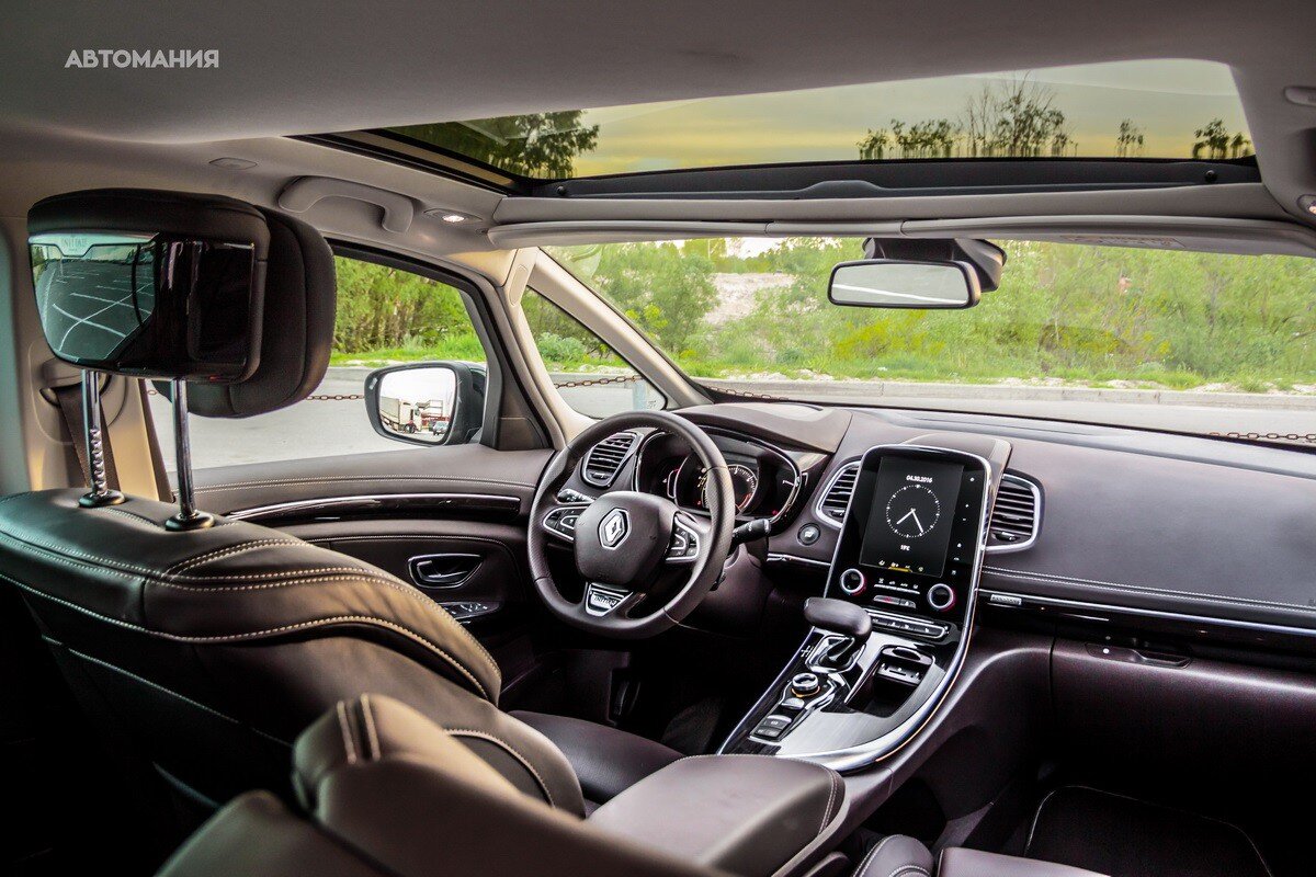История французского автомобиля Renault Espace началась в 1984 году. Первое, второе и третье поколение разработано и выпускалось сторонней компанией Matra, но автомобили все равно продавались под маркой Renault. Выпуском четвертого и пятого поколения занималась уже компания Renault. Последнее, пятое поколение Renault Espace было представлено широкой публике в 2014 году в Париже на мотошоу. Три, когда минивэн потерпел небольшое обновление. Но несмотря на все это Espace не сильно изменился от своих предшественников. Но стал стильным и более современно оснащен. В экстерьере минивэна прослеживается стилистика популярных автомобилей компании Renault. Пятое поколение Espace получило прищуренную светодиодную головную оптику. Фары соединены небольшой радиаторной решеткой, которая имеет хромированный горизонтальные полоски для красоты. Посередине радиаторной решетки имеется достаточно крупная эмблема компании Renault. Передний бампер с пластиковой накладкой чуть выпуклый, в него интегрированы п