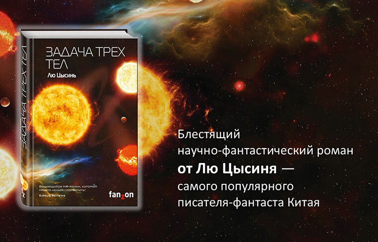 «Задача трёх тел» — роман китайского писателя-фантаста Лю Цысиня в жанре научной фантастики. Написан в 2006 году и издан в журнальной серии 科幻世界 («Мир фантастики»). Вышел отдельной книгой в 2008 году, став одним из самых популярных фантастических романов Китая. Обрёл широкое мировое признание после публикации перевода на английском языке под заглавием «The Three-Body Problem» (переводчик Кен Лю); во время своего президентства его читал Барак Обама. В том же году роман был номинирован на премию «Небьюла», а в 2015 году стал обладателем премии «Хьюго» как лучший фантастический роман года. Название романа отсылает читателя к задаче трёх тел, одной из нерешаемых в аналитическом виде задач небесной механики. В неопределённом будущем планируется выход на экраны сериала, съёмки которого начались в Китае весной 2015 года. На самом деле, "Задача трёх тел", книга очень крутая. Постоянно, во время прочтения, ощущение, что писал ее реальный учёный. Отложил в сторонку опыты, поправил очки и сел п