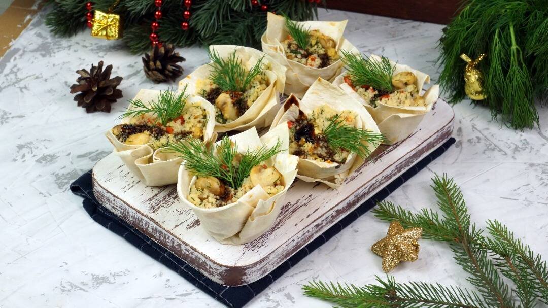 Постное меню. Корзиночки из лаваша с овощами и кускусом