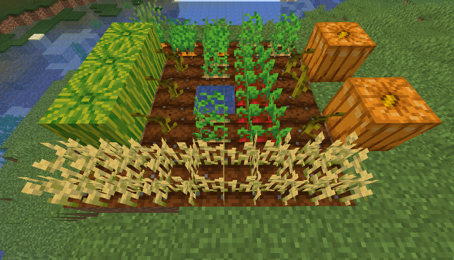 Всем привет, с вами Minecraft - проводник по выживанию. В этой статье я расскажу о том, как выращивать сельскохозяйственные культуры в Майнкрафте. Итак, приступим. На ранних стадиях игры добывать себе еду довольно тяжело: нужно отправляться на охоту, а затем готовить себе жареное мясо. Такой подход занимает много сил и времени. Обзаведшись домом, вы сможете выращивать себе еду на грядках самостоятельно. Начать следует с разравнивания территории и превращения земли в грядки. Для этого нужно разрыхлить её мотыгой. При этом должно выполнятся ещё одно условие: грядке нужна вода, и она должна находится на расстоянии максимум в четыре блока. Можно разбить грядку шириной не более четырёх блоков на берегу водоёма, построить искусственный канал, или самое практичное: надо поместить водяной блок посреди поля 9 x 9. Грядка, будучи влажной, а значит и плодородной, становится немного темнее. Также нужно постараться случайно не затоптать грядку. Не стоит забывать, что растениям в Майнкрафте, как и в