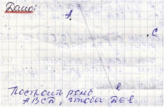 Пусть АВСD данный ромб (искомый) мы построили, причем т. D∈l.