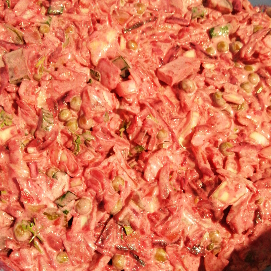 #меню #салаты Ингредиенты: свеклы, морковь 🥕, картофелин, луковицы репчатых 🧅, соль, перец , зелень, майонез , колбасы, горошка зелёного, огурцов маринованных, квашеной капусты Способ приготовления: Отварить корнеплоды до мягкости. Лук почистить. Нарезать кубиками морковь, лук, картофель, свеклу, колбасу. Выложить в салатник. Добавить огурцы, нарезанные кубиками. Добавить капусту. Выложить зелёный горошек (слить жидкость).Все хорошо перемешать. Салат 🥗 можно заправить майонезом или растительным маслом (по вкусу). Колбасу тоже можно тне добавлять, это дело вкуса. Салат посолить, поперчить и хорошо перемешать. Поставить 🥗 на 1 ч в холодильник. Приятного аппетита!