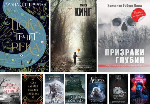 Диана Сеттерфилд. Пока течет река Обычный вечер. За окном зима конца XIX века. Завсегдатаи трактира «Лебедь», что на берегу Темзы, привычно травят байки. Неожиданно размеренное течение жизни нарушает раненый незнакомец, объявившийся на пороге с безжизненным телом маленькой девочки. Невероятно, но ребенок возвращается к жизни через несколько часов. Как это произошло? Кто эта девочка? Чья она? Жители берутся разгадать тайну. Незнакомка хранит молчание. Стивен Кинг. Оно В городке Дерри одно за другим происходят страшные убийства. Дети гибнут, а полиция ничего не может сделать. Тогда жестокого убийцу решают отыскать семь ребят одиннадцати лет. Каждый столкнется с чудовищем, ужасающим Оно, лицом к лицу. Взрослые не придут на помощь. Они не могут увидеть Оно, ведь чудовище – воплощение детских страхов. Кристиан Роберт Винд. Призраки глубин Один портовый городок в разгар сезона осенних ливней захватывает волна загадочных похищений младенцев. Полиция бессильна: ни следов, ни зацепок. Расс