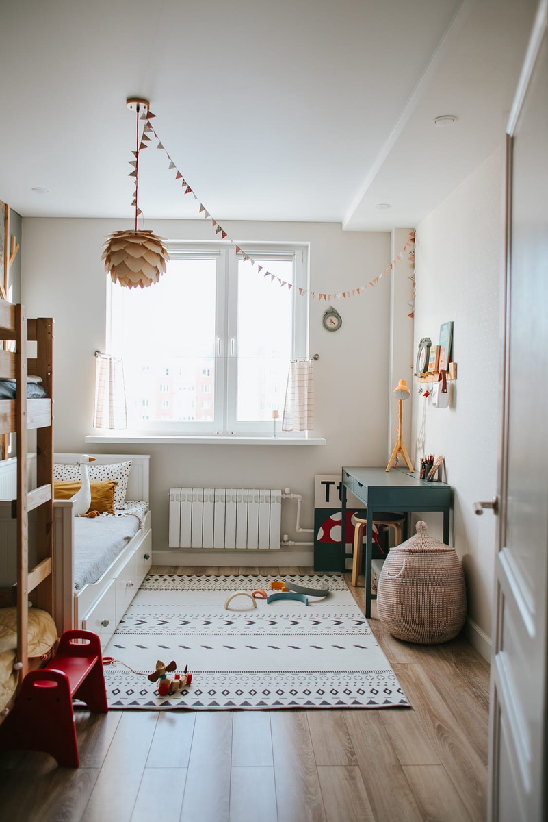 Детская комната — она как обувь, постоянно надо менять. Детская для троих детей Все начинается с обоев в горошек, которые резко становятся неуместными, затем стол, который надо заменить на побольше, а следом и кровать… О том, как сделать детскую для троих детей, редакции ПЛЕДА рассказала Диана Багрова. (В душе дизайнер, на деле фотограф) Но наша переделка началась по иной причине. Мне очень не хватало динамичности в этой комнате, хотелось двигать мебель, вносить новые интерьерные решения. Но неправильное расположение грифельного домика не позволяла мне это сделать… Грифельная доска должна быть переносной, либо не занимать много места. Как бы я не двигала кровати, весь вид портило «чёрное пятно». И тогда я решила убрать его, но это не значит, что я лишила детей места для рисования… Меловая доска появилась на нашей кухне, что стало удобно для всех членов семьи!!! Краску для грифельной доски мы наносили прямо на стену, поэтому грифельный домик нельзя было никак переставить. Не совершайт