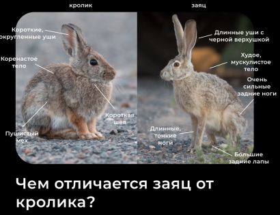 В первую очередь, их главное отличие во внешнем виде: заяц крупнее кролика и уши у него длиннее. Из-за того, что зайцы привыкли убегать от опасности, а кролики — рыть норы и прятаться в них, ноги у зайца сильнее. Помимо этого, кролик никогда не меняет окраску шёрстки, а зайцы — два раза в год Различаются и их места жительства. Кролики живут в норах, которые роют сами, а зайцы прячутся в ямках или под кустиками и там же могут выводит своё потомство Рождаются кролики беспомощными, слепыми и голенькими, питаются молоком матери, которая их постоянно оберегает. Зайцы же рождаются сразу с шерстью и зрячими, мать один раз их кормит и убегает, хоть и держится поблизости, чтобы защитить. Получается, что детство у зайчат заканчивается быстрее, чем у крольчат 😔 Ну и последнее из самых явных отличий заключается в том, что зайцев невозможно приручить, а кроликов — можно Пишите в комментариях, понравилась ли вам новая рубрика и про что нам ещё рассказать
