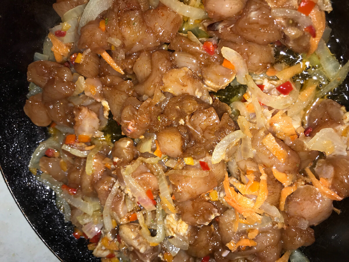 Придя с работы, я долго раздумывала над тем, что же сегодня мне приготовить такого вкусного и сочного на ужин...И, да! Конечно же, курочку! Я вспомнила, что у меня есть нежное филе курочки и тут же принялась его разделывать👇 Разделываю курочку, режу на небольшие кусочки Солим по вкусу Лучше не досолить, потом по вкусу каждый добавит как ему нравится Добавляю копченую паприку Далее добавляю приправу для хрустящей курочки Обязательно кладу 3-4 столовых ложки соевого соуса Обжариваем до золотистой корочки лук Я всегда добавляю замороженную морковку и болгарский перец А вот и наша курочка готова, отправляем ее к луку И вот такая вкуснятина у нас жарится Добавляю любимые спирали твёрдых сортов, ГОТОВО! Приятного Вам аппетита! Пишите в комментарии как вы готовите курочку👇