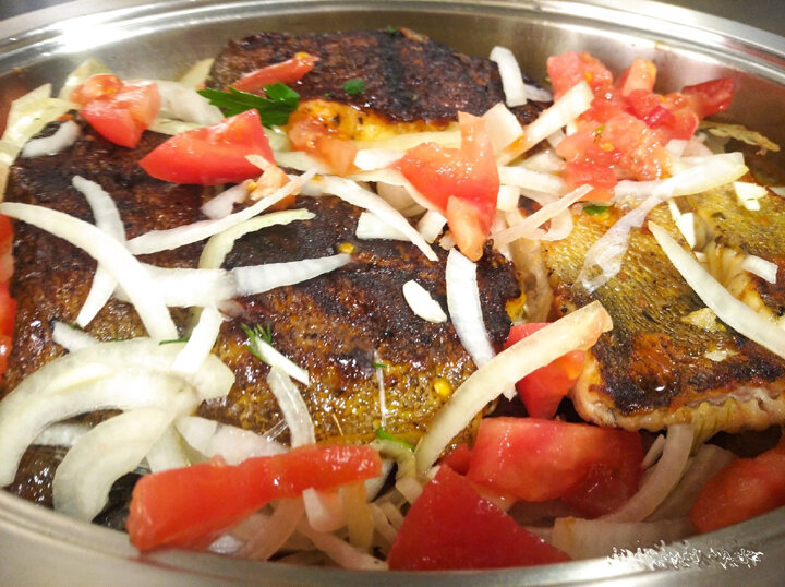 Попался палтус в продаже. Решила купить, так как было чётко указано: замороженный один раз. Производитель - Мурманск, скажу вам честно: рыбка отменная, такое ощущение что только что из моря. Готовила таким же способом, что и судака. Разделала на порционные филейные кусочки, присыпала специями, нарезанным луком и добавила лаврушки. Не солила. Сотейник с толстым дном очень сильно раскалила, и уложила куски рыбы на раскалённую поверхность без масла. Накрыла крышкой и выключила огонь. За счёт раскалённого дна процесс приготовления продолжился. Спустя 20 минут открыла крышку, перевернула кусочки. Если же сотейника с толстым дном нет, можно просто запечь рыбу в духовке – сначала под фольгой, а последние минут 15 – в открытом виде. Ни грамма панировки или муки. К луку и лавру добавила помидор и сбрызнула лимонным соком, когда рыбка была уже готова. Больше всего помимо вкуса радует отсутствие костей, а мясо палтуса нежнейшее, тающее во рту. ✓ Палтус размороженный 500 г
