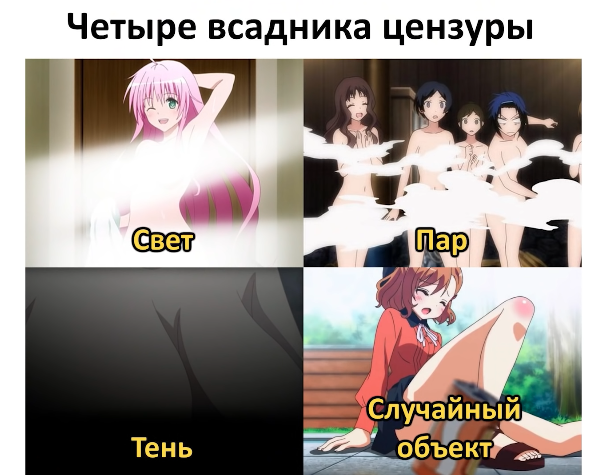 Добро пожаловать! Вы ведь понимаете, что сейчас начнётся? аниме подборка? или может просто красивые аниме арты? Ни то, ни другое. Сейчас начнётся сборка из 11 разных и по-своему прикольных аниме мемов! И сейчас вы посмотрите и скажите "Вот это было весело". Так что вперёд и с песней! 11. Всадники цензуры Вот эти самые "всадники" мешают нам с вами разглядеть, то что мы обычно хотим. И зачем это сделано - непонятно. Но тут действует правило 34. Если есть зацензуренная версия, то где-то гуляет и без цензуры, просто надо хорошо поискать. 10. Жизнь детектива Тут с пацаном всё понятно. Он и выглядит так, как будто вообще не спит ночами. В это время, наверное, выслеживает преступников. 9. Коротко о том Какой бы из меня получился преступник. 8. Микаса нагоняет жуть Вроде девочка, а такой безумный взгляд, будто она в этот момент готова на сто-то серьёзное. 7. В Китае тем временем Была вот такая вот запрещёнка. По-моему скромному мнению, не стоило так делать и всё запрещать. Хотя всё р
