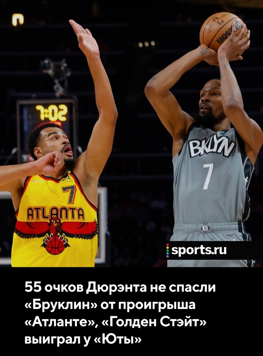 НБА. 55 очков Дюрэнта не спасли «Бруклин» от проигрыша «Атланте», «Голден Стэйт» выиграл у «Юты» и другие результаты