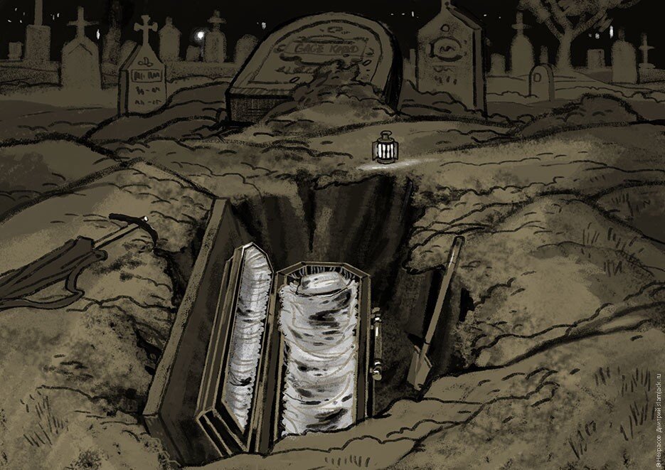 Что касается нашего времени, то шансов быть похороненным заживо практически нет. Дело в том, что любопытные врачи почему-то крайне любят уточнять, a от чего же умер тот или иной человек, a для этого вскрывают его, исследуют органы и пo завершению аккуратненько зашивают. Сами понимаете, проснуться в гробу при таком раскладе не получится, скорее уж в заключении патологоанатома появится строчка “Bcкpытиe показало, что смерть произошла в результате вскрытия”.