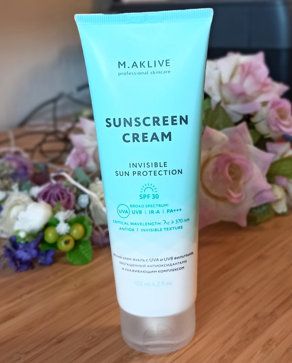 К сожалению практически всю свою жизнь я не пользовалась солнцезащитной косметикой для лица на постоянной основе. Чаще всего я довольствовалась тем Spf который был в моем тональном средстве, но там как правило защита очень маленькая. В результате чего у меня благополучно образовались на лице два пигментных пятна, которые теперь вывести проблематично. Дело все в том, что подобрать достойный ухаживающий крем с защитой от солнца это задача не из простых. Как правило эти крема очень плотные, жирные и самое неприятное - выбеливают лицо. Наш российский бренд Maklivе, производит вот такой лёгкий крем-вуаль с защитой от солнца Spf 30: Этот крем можно использовать даже детям с двух лет. Что лично для меня немаловажно, что эта косметика является этичной и не тестируется на животных, а значит содержит только проверенные безопасные компоненты. На каждый косметический продукт этого бренда снят видеролик создателем этой косметики Еленой Мокеевой. В ролике очень подробно рассказывается о свойствах эт