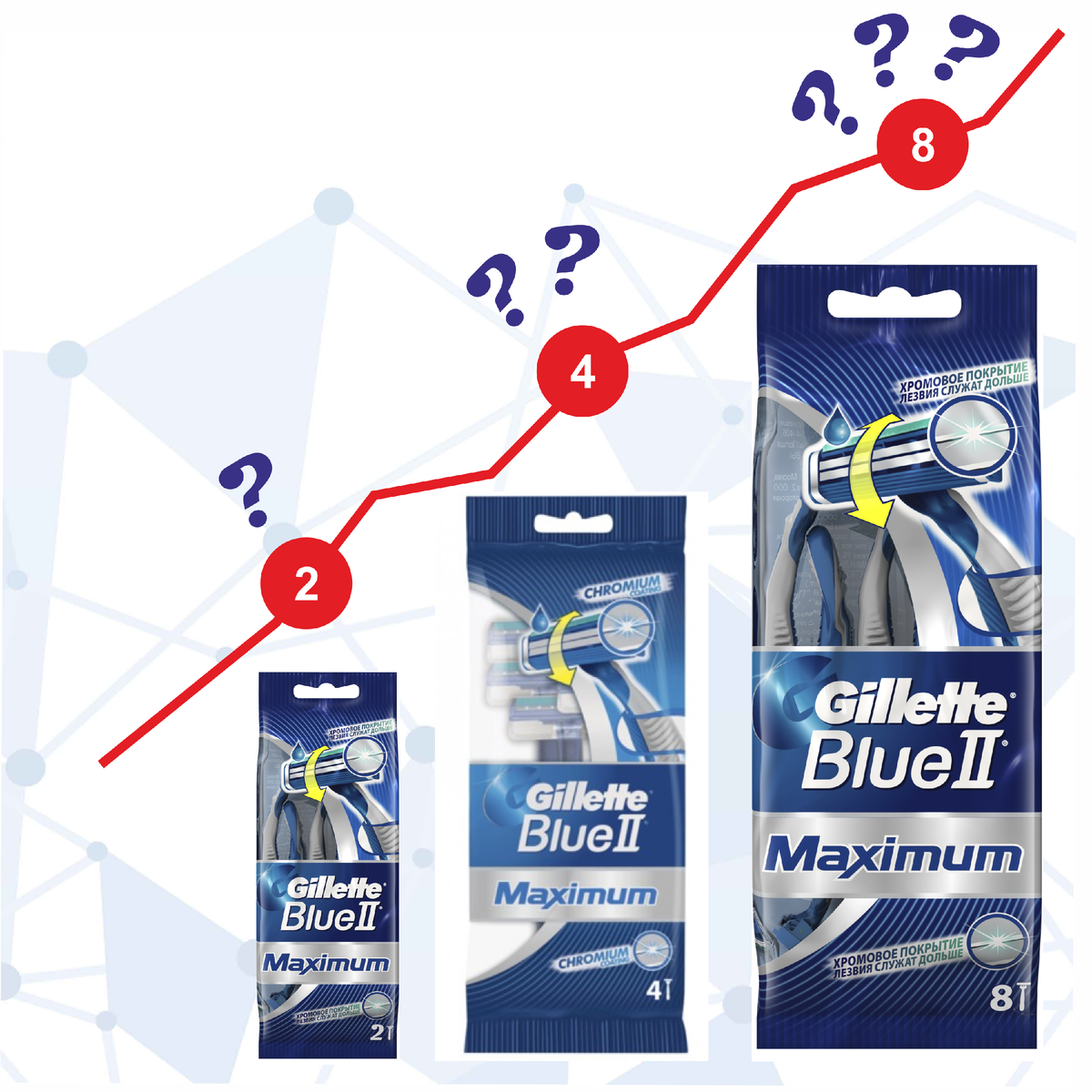 Для начала зададите себе вопрос. Какую упаковку вы купите (представьте что это не лезвия, а например леденцы на палочке) ?