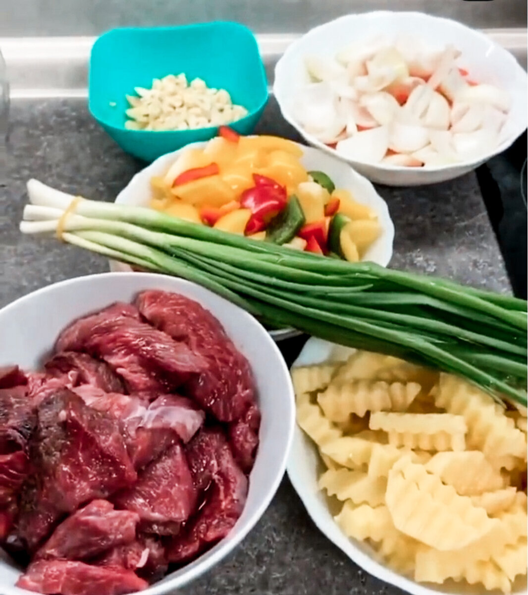Всем привет🖐 и отличного настроения! Сегодня хочу поделиться с вами очень вкусным рецептиком мясо с овощами в кисло-сладком соусе. Для приготовления нам понадобятся следующие ингридиенты: Мясо-300гр. Помидоры-3шт. Болгарский перчик-2шт. Репчатый лук-1головка Морковь-1шт. Чеснок-3 зубчика Имбирь сушеный-1ч.л. Томатная паста-1ст.л. Сахара-1ст.л. Крахмал-1ч.л. Уксус(9%)-1ч.л. Соевый соус-100мл. Вода-200мл. Растительное масло Ну, что начнем? Нарезаем мясо (говядина или свинина неважно, вообщем, у кого-что есть) кубиками, обжариваем и перекладываем в сотейник. Затем нарезаем морковь, лук и перец крупными кусочками и обжариваем до полуготовности, добавляем помидоры, нарезанные кубиками и еще обжариваем 15-20 секунд. В отдельную скородку крошим мелко чеснок и обжариваем его отдельно от овощей, к нему добавляем томатную пасту, соевый соус и тушим на медленном огне примерно 30 секунд. Потом туда же добавляем воду, сахар и уксус, обязательно пробуем, вдруг на ваш вкус чего-то не хвата