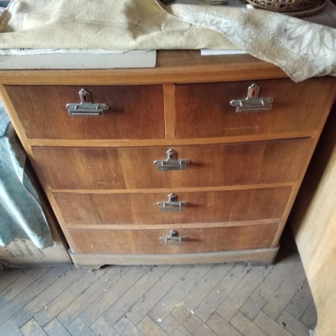 Дорогие друзья, мой канал совсем молодой. Хочу поделиться с вами своими маленькими радостями и отвлечь вас хоть немного от всяких грустных мыслей и дум. В 2016 году мы с мужем и детьми решили, что нам нужна, просто необходима своя дача (без родственников). Хотели стать полноправными хозяевами и делать на ней что хотим. В 2017 году мы купили голый участок и три года строили нашу "избушку на курьих ножках". И вот домик построен. Сразу возник вопрос: чем его обставлять? В квартире старой ненужной мебели не было. Да и денег на то, чтобы покупать новую тоже. Я очень полюбила смотреть на «дзен» переделки различных предметов мебели. Смотрела залпом все подряд. И вот он момент истины: я могу попробовать сама испытать свои силы в переделке мебели. Муж, кстати, меня не поддержал, сказал, что я «ку- ку». Но я женщина настырная, и тихим сапом всегда гну свою линию. В общем на авито я купила старый-престарый комод. Вот его фото. Мы привезли его на дачу, и он там начал свою новую жизнь, с новыми х