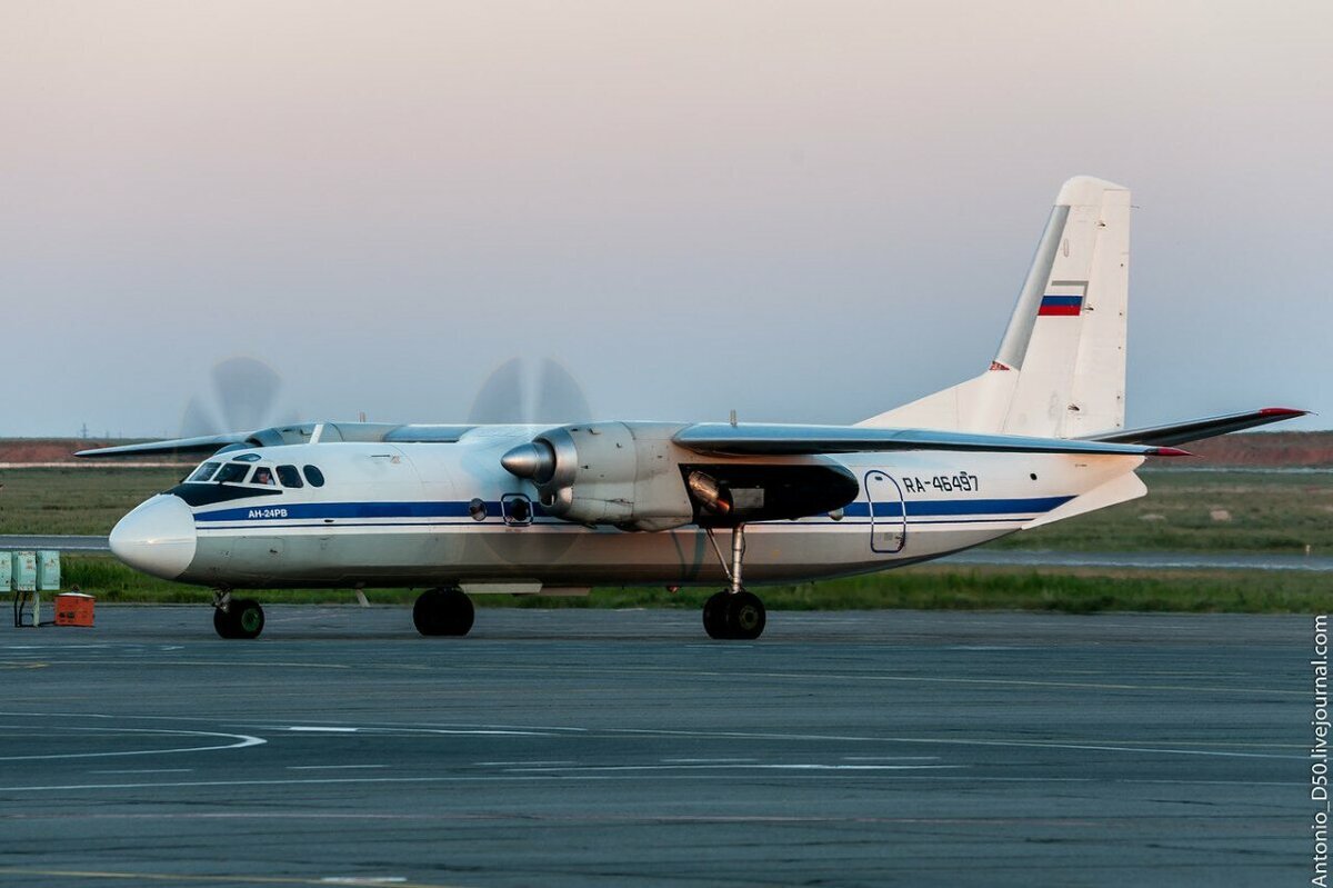 Ан-24 советский турбовинтовой самолёт разработанный в КБ антонова, в середине 50х. Первый полёт Ан-24 совершил 20 октября 1959 года. В 1961 году проходили заводские и государственные испытания. Серийное производство самолёта началось в начале 1962 года. В сентябре 1962 года состоялся первый технический рейс с пассажирами. 31 октября 1962 года началась эксплуатация самолёта на трассе Киев — Херсон. В советское время Ан-24 был одним из самых востребованных самолётов и обеспечивал треть пассажирооборота в стране. Причина высокого спроса на лайнер заключалась в его возможности совершать посадку на небольшие неподготовленные аэродромы и грунт. Производство самолёта продолжалось до 1979 года. С 1962 по 1979 год было выпущено более 1200 бортов.