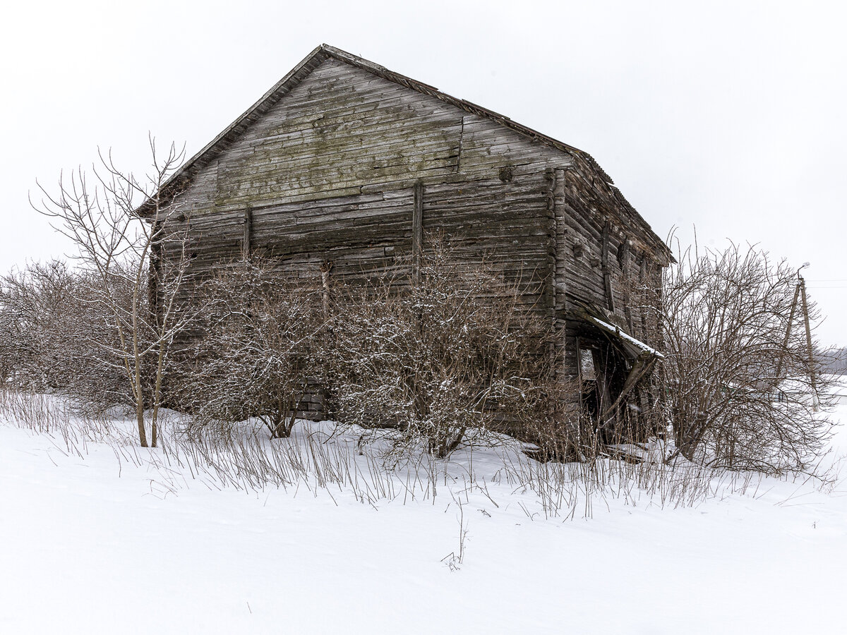 Окружённое низенькими деревцами двухэтажное деревянное здание выглядит внушительно. Вокруг глубокие сугробы, и, чтобы попасть внутрь, приходится тропить себе дорожку по колено в снегу. Навес над входом совсем обвалился, кто‑то заботливо подпёр козырёк деревянным шестом. У входа слева и справа сохранились массивные ржавые петли, на которых когда‑то держалась дверь.