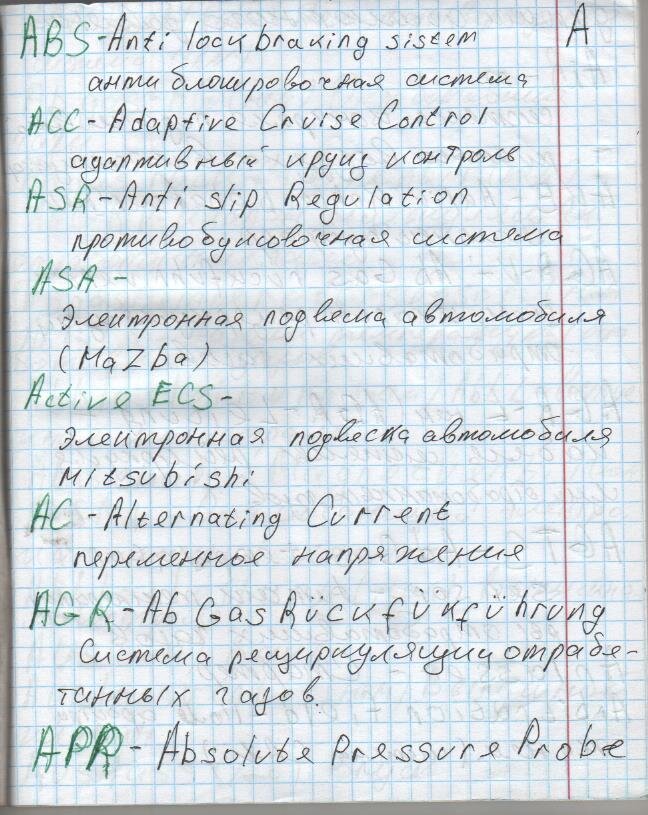 Я не являюсь ни действующим, ни бывшим автомастером, или автомехаником. Я чайник автолюбитель, всего лишь увлекаюсь темой самостоятельного ремонта автомобилей. Чтобы хоть немного быть в курсе современных технологий ремонта и обслуживания автомобилей. Изучаю статьи, читаю книги, смотрю видео. Довольно часто попадаются иностранные термины. Эти термины я записываю в тетрадочку. А потом нахожу расшифровку. В результате получился не большой словарик автоэлектрика- диагноста автолюбителя.