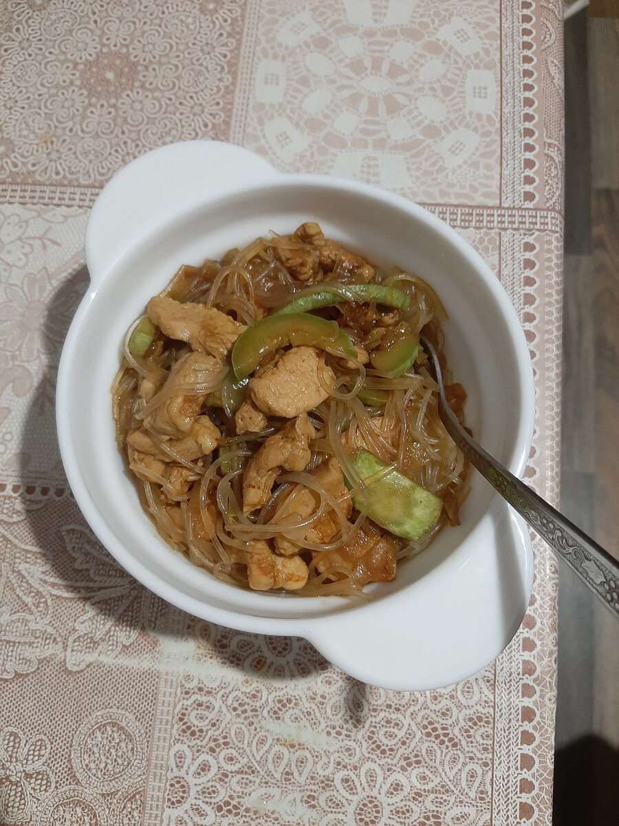 Девушка приготовила очередное блюдо. На сей раз из фунчозы, а самое главное - вкусное. А я люблю вкусно поесть! :) Как я рассказывал раннее, моя девушка любит поэкспериментировать на кухне с едой и готовить каждый раз что-то новое, необычное. Человеку, который последние 5 лет питался одним и тем же, а именно гречка с курицей и овощами с добавлением различных специй, любое новое блюдо на кухне для меня всегда необычное, ха-ха. Не буду долго тянуть резину, а приступлю к рецепту приготовления сея блюда! Для начала у нас идёт подготовка продуктов: Потом идёт этап приготовления: Рецепт: Если Вам понравился рецепт, то обязательно подписывайтесь, ведь дальше будет ещё много рецептов!