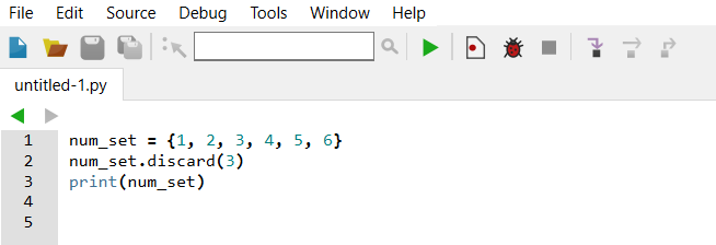 Один или несколько элементов можно удалить из объекта set с помощью следующих методов. − remove() − discard() − pop() Их отличие в виде возвращаемого значения. Python позволяет нам удалять элемент из множества, но не используя индекс, так как множество элементов не индексированы. Элементы могут быть удалены при помощи обоих методов discard() и remove(). Запомни! метод discard() не будет выдавать ошибку, если элемент не был найден в множестве. Однако, если метод remove() используется и элемент не был найден, возникнет ошибка. Продемонстрируем как удалять элемент при помощи метода discard() Пример 1: Результат: {1, 2, 4, 5, 6} Аналогично, метод remove() может использоваться следующим образом Пример 2: Результат: {1, 2, 4, 5, 6} Теперь попробуем удалить элемент, которого нет в множестве. Сначала используем метод discard() Пример 3: Результат: {1, 2, 3, 4, 5, 6} Выдача выше показывает, что никакого воздействия на множество не было оказано. Теперь посмотрим, что выйдет из использования мето