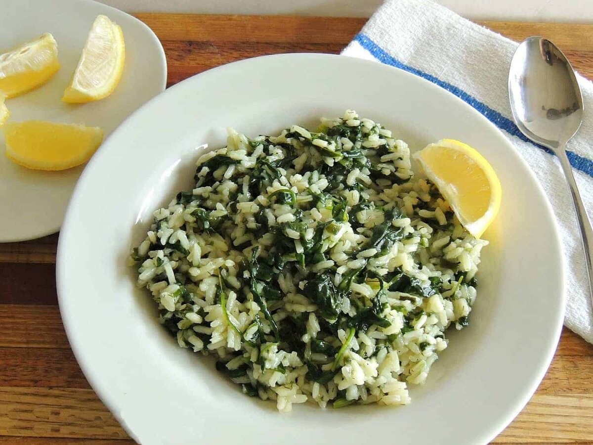 🌿Греческое блюдо для вегетарианцев 🌿СпанакОризо (спанак – шпинат, ориз – рис) 1 кг - шпинат зеленый, свежий (я брала 500 гр замороженного во Вкусвилл) 100 г - масло оливковое 1 шт. - лук репчатый 1 пучок - лук зеленый 1 пучок - лук-порей (я не добавляла) 300 г - рис (лучше длинного) 1/2 пучок - укроп 1 шт. - лимон по вкусу - перец свежемолотый, соль Для подачи: фета ПРИГОТОВЛЕНИЕ: ◽Мелко нарезать репчатый лук, разогреть оливковое масло в сотейнике или в глубокой сковороде и выложить его туда. Обжаривать несколько минут до мягкости ◽Затем, я добавила шпинат и обжаривала до того момента как он растает и станет мягким ◽Далее добавила хорошо промытый, сырой рис и тщательно перемешала ◽Порезать зеленый лук и, если есть лук-порей и отправить в сковородку. ◽Залить водой, посолить и поперчить, накрыть крышкой и тушить на маленьком огне около 20 минут. ◽В конце, перед выключением, добавить к рису со шпинатом сок лимона, оливковое масло и зелень. ◽Накрыть крышкой и дать нем