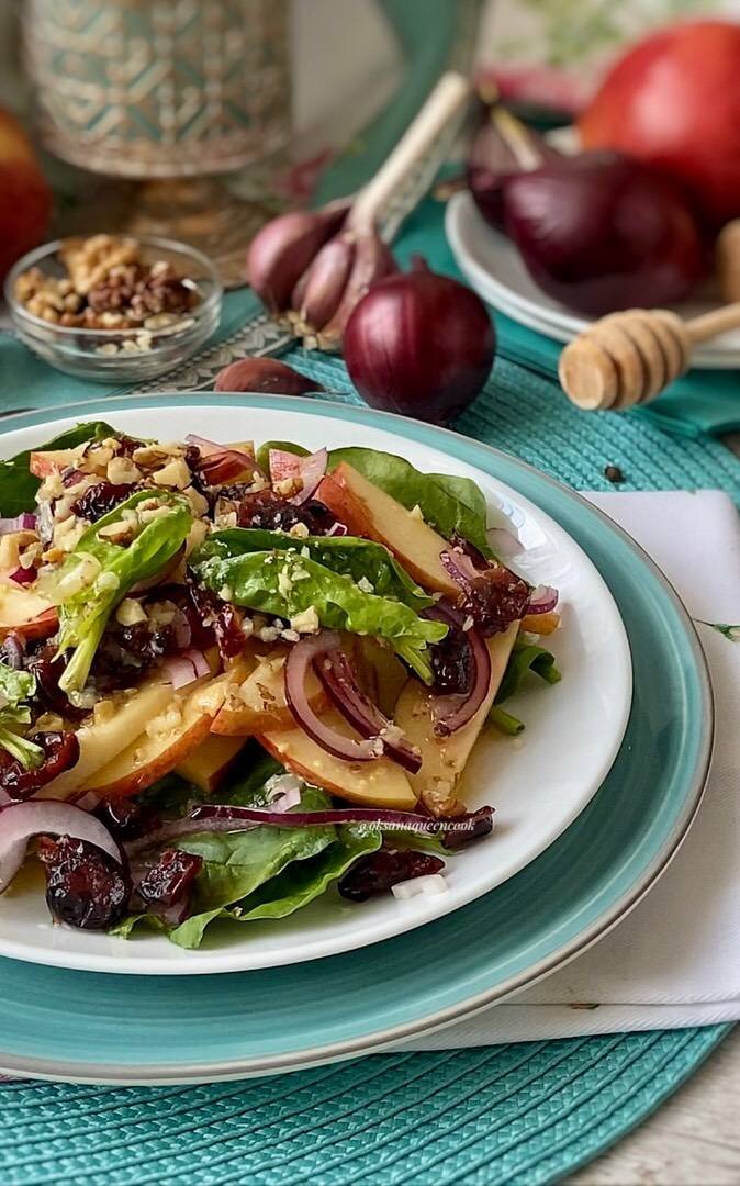 🍎Салат из шпината с яблоком и сушёной клюквой