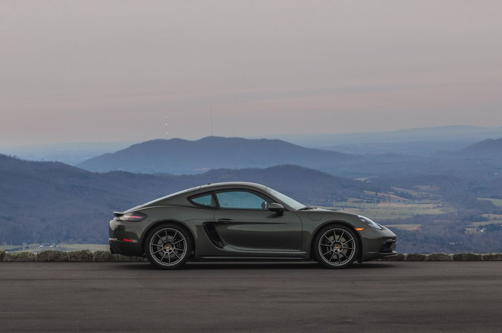 Наш новый Cayman прибыл хорошо одетым для своего пребывания с командой энергичных водителей . Он покрыт лаком нежно-сдержанной краски Aventurine Green Metallic — это гораздо лучше, чем красный, вызывающий . В конце концов, это GTS 4.0, что на языке Porsche означает «гоночный». Он приводится в движение установленным посередине атмосферным 4,0-литровым оппозитным шестицилиндровым двигателем, который развивает мощность 394 лошадиных силы при 7000 об/мин.