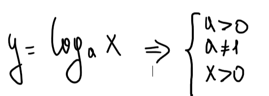 У него нельзя ставить в основание 1 или число, меньшее 0. Но с этим у нас проблем в первой части и нет. А ещё нельзя, чтобы под логарифмом было отрицательное число. Поэтому, самый обычный график логарифма всегда в правой области (1 и 4 четверти), где x>0.