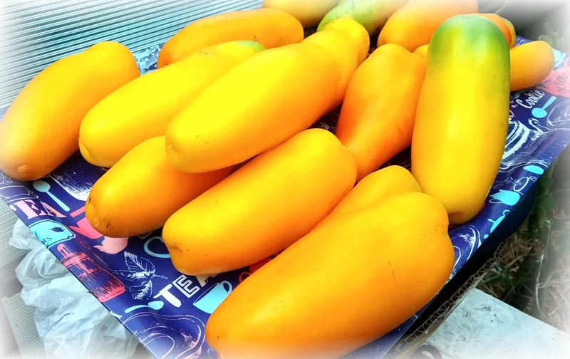 Плоды с десертной сладкой мякотью очень вкусны в свежем виде. Томат получает высокую дегустационную оценку от любителей и профессионалов. Аромат классический, томатный. По соотношению сахаристости и кислотности во вкусе считается хорошо сбалансированным. Томат Сибирские бананы — среднеспелый. Средние сроки созревания составляют 105-110 дней. С 1 кв. м собирают до 15 кг томатов. Гибрид считается высокоурожайным.