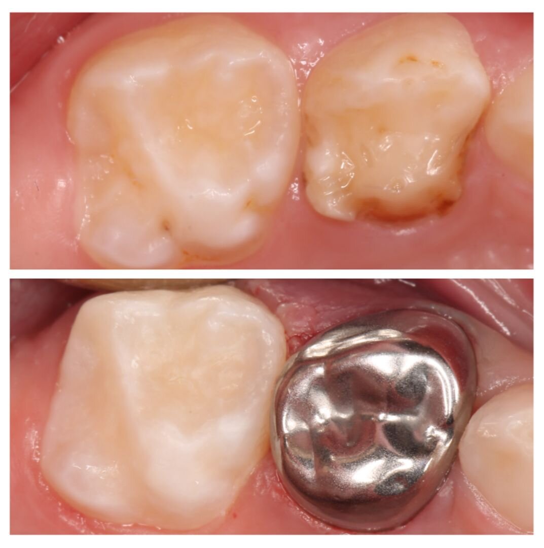Восемь зубов без наркоза?! В ТРИ ГОДА? Можем, умеем, практикуем. Девочке 3 года. Были жалобы на боль в дальнем зубе при приеме пищи. Родители обращались в несколько клиник, где им назначали серебрение и лечение под наркозом. Но они решили обратиться к нам за иным экспертным мнением. Рекомендую делать так, если сомневаетесь в назначениях врача и хотите узнать еще одну точку зрения. Это нормальная практика. Прием вела детский стоматолог Алёна Долгалёва. Она мягко адаптировала малышку и в первый же визит провела профессиональную гигиену и вылечила один зуб, для которого не требовалась анестезия. Всё сложилось удачно! Во второй прием лечили уже с местным обезболиванием (укол). "Четверка" была сильно разрушена — пришлось установить металлическую коронку. Остальные зубки (все "пятерки" и оба верхних центральных резца) восстановили пломбами из светоотверждаемого материала. Вот так обошлись без наркоза и седации! Если есть шанс обойтись без сложных манипуляций, обязательно стоит попробовать