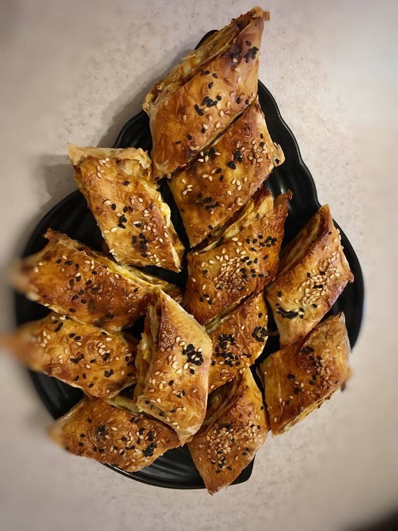 Ингредиенты: отварного куриного мяса, отварной говядины(по желанию), моркови, лук, Растительное масло, сметана, средних лаваша, сыра, Яйцо для смазывания, Кунжут для посыпки, Сванская соль, молотый кориандр, сушёный чеснок, белый молотый перец, сушёный укроп, немного красного острого перца Способ приготовления: Лук мелко нарезаем и жарим на растительном масле до прозрачности. Добавляем натертую морковь. Жарим пару минут. Заранее отваренное куриное мясо разделяем на волокна, и добавляем в зажарку. Также туда можно добавить отварную говядину, нарезанную тонкой соломкой, или также разорванную на волокна. Все перемешиваем, добавляем специи. На лаваш (если очень тонкая берите сразу по две) смазываем сметану. Сверху посыпаем начинку, распределяем равномерно. Сверху натираем сыр. Аккуратно заворачиваем в рулет и убираем в холодильник на пару часов. Нарезаем рулет на порционные кусочки, смазываем взбитым яйцом и посыпаем кунжутом. Выпекаем в разогретой до 200 с духовке до румяной корочки. ПриЯ