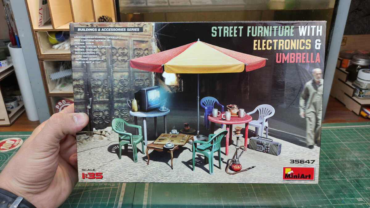 Всем привет 👋. В этой статье я предлагаю вам рассмотреть более внимательно содержимое набора пластиковых моделей уличной мебели для диорам от "mini art" в масштабе 1/35, (каталожный номер 35647). Итак, без лишних слов. В наборе нас ждут 14 маленьких литников с мебелью, эллектроникой и посудой, 1 прозрачная деталь экрана телевизора и инструкция на которой предоставлены бумажные, печатные элементы моделей. Пожалуй самый интересный литник включает в себя: кальян, нарды, магнитофон и телевизор. Тут облоя практически не обнаружено, следы толкателей в местах закрываемых после склейки а сами детали выглядят весьма достойно для пластика, на уровне смоляных дополнений. В наборе есть два одинаковых литничка с круглым пластиковым столом (1литник-1стол) и 1 литник с низким деревянным столиком. Особенно приглянулось то что на пластиковом столе отлично проработана нижняя часть что позволяет сделать его перевёрнутым при надобности и не потерять при этом реалистичный вид! Облоя на литничках не обнар
