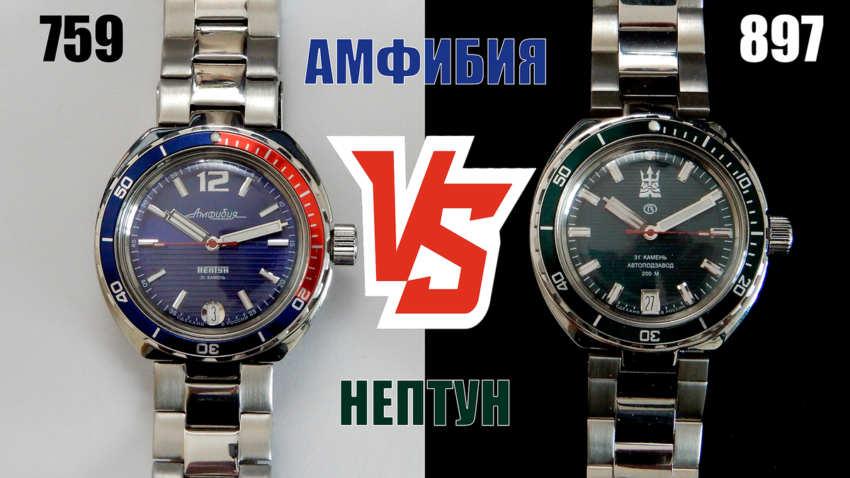 ВСЕМ ПРИВЕТ! Сегодня на обзоре Амфибия еще один "НЕПТУН" от чистопольского часового завода "Восток", но уже предыдущей версии. Референс модели: 2416/960759 ХАРАКТЕРИСТИКИ такие же, как и 897-й модели, а именно: РАЗМЕРЫ тоже совпадают с новой версией: ОСОБЕННОСТИ - вот тут уже есть отличия от 897-й версии. Давайте смотреть. ПРАКТИКА ИСПОЛЬЗОВАНИЯ - Браслет интегрированный, штампованный (хотя "прикидывается" литым). Полировка по центру + сатинирование по краям. Между звеньями обработки нет. Выглядит аккуратно, кроме застежки. Застежка также штампованная с тиснением "Восток". Однако, в отличии от "Бабочки", на этой застежке есть три ступени регулировки, а это уже целое звено. У "Бабочек" такого нет. То есть браслет с классической застежкой можно либо ослабить (на пример, если у вас немного отекла рука и часам стало тесно на запястье), либо наоборот, подтянуть, если вы чувствуете, что часы стали болтаться на руке. "Бабочку" так не отрегулируешь. С другой стороны, у "бабочки" нет т