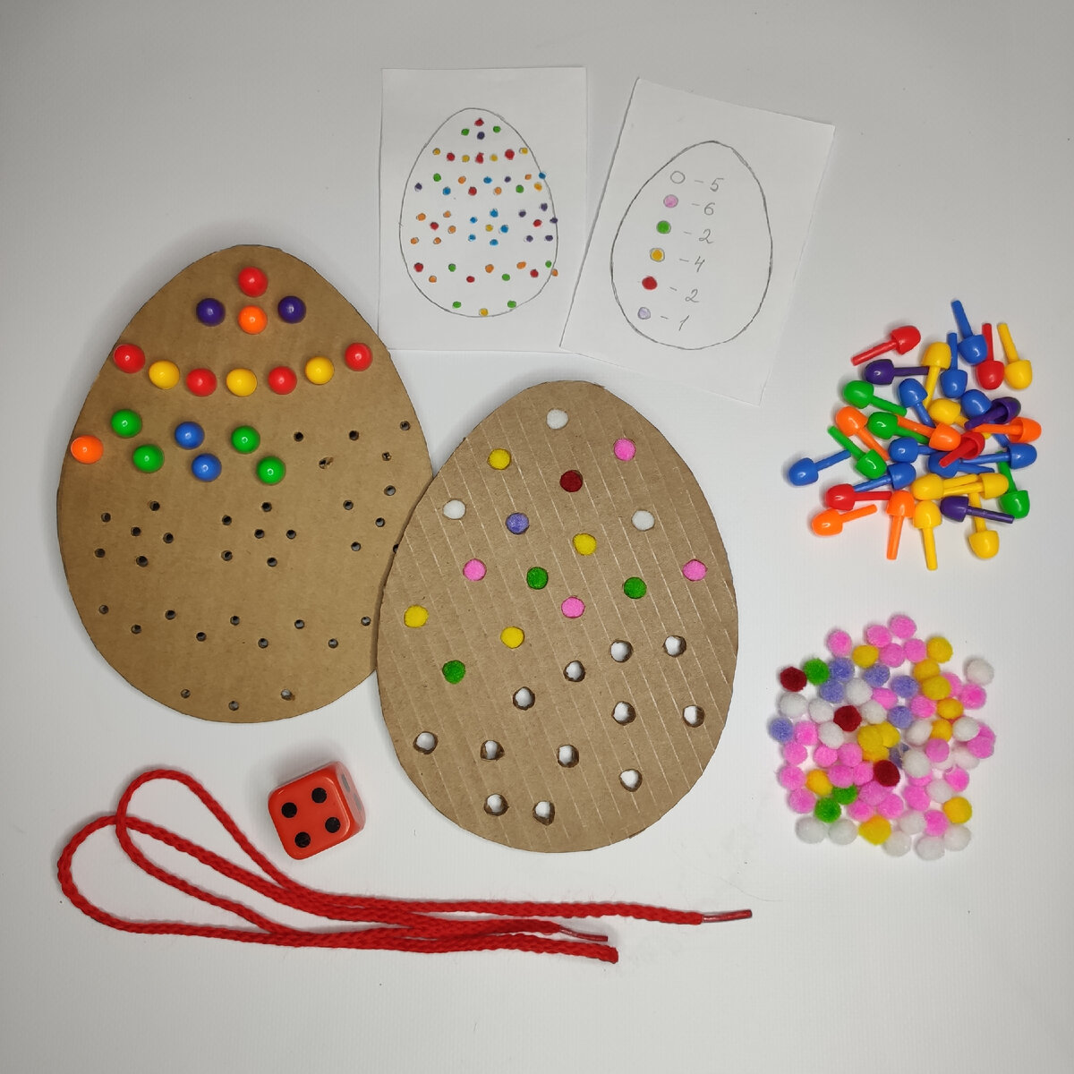 Всем привет! Любите тематические занимашки? Я - очень! В апреле это, конечно, занимашки ко дню космонавтики и пасхальные. Сегодня речь пойдет как раз про вторые👇 Героями сегодняшних пасхальных занимашек будут картонные яйца 😃 На картоне от коробки рисуем яйцо. Осторожно вырезаем его по контуру с помощью канцелярского ножа. Проделываем в яйце отверстия с помощью шила или другого острого предмета. Их количество и расположение по вашему желанию. Для игры пригодятся детальки от детской мозаики. Кажется, такая есть практически в каждом доме😃 Задача ребенка - украсить картонное яйцо яркой мозаикой. Кстати, если мозаики дома не нашлось, можно покрасить ватные палочки с 2 сторон, дать высохнуть, а потом отрезать концы. Получается очень похоже. Для начала можно дать волю воображению ребенка. Пусть украшает так, как ему хочется☺️ А потом полезно попробовать работать по образцу. Сделать несколько карточек с известным заранее расположением цветных деталей. Задача не простая, понадобится вн