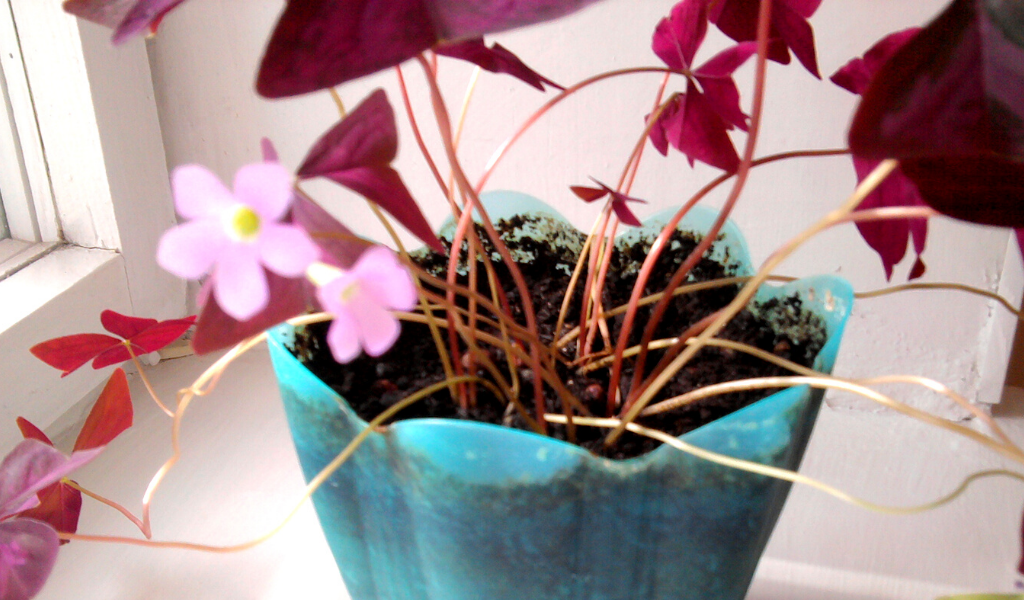 Первым таким цветком хочется назвать фиолетовую кислицу. Еще этот цветок называют «бантики». Цветок интересен тем, что свои листочки – бантики он закрывает на ночь. А утром они раскрываются. Как будто говорят: « Доброе утро, хозяин!». Этот цветок все лето цветет нежными небольшими цветочками. Есть мнение, что кислица – символ семейного счастья. Цветок приносит счастье и благополучие. Способствует раскрытию талантов у детей. Я не очень верю во все эти волшебства. А вот в то, что цветок очищает воздух, доказано. Поэтому считаю, что такое растение нужно иметь в доме. Еще одно растение – молочай беложильчатый. Этот цветок является разновидностью пальм и внешне похож на пальму. Существует легенда, что такой подарок молодоженам принесет в молодую семью мир и счастье. В то же время растение ядовитое. Поэтому держать цветок нужно вдали от маленьких детей и животных. У меня моя пальма стоит на кухонном окне. Подальше от кошки. Ну и самое мое любимое растение – бегония. Бытует мнение, что расте