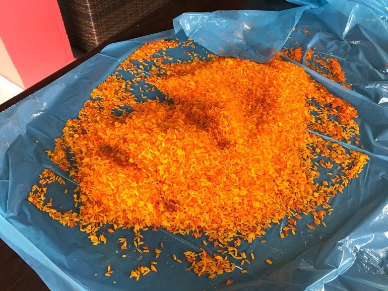 Накрасила сегодня еще риса для занятий. На 8 человек надо много, за раз трудно перекрасить, поэтому я постепенно крашу. То кило желтого, то кило зеленого, так и набрался уже огромный мешок килограмм на 10. Девочки в последнее время полюбили два новых для нас мультфильма. Холодное сердце и Леди Баг. Посмотрели все серии у