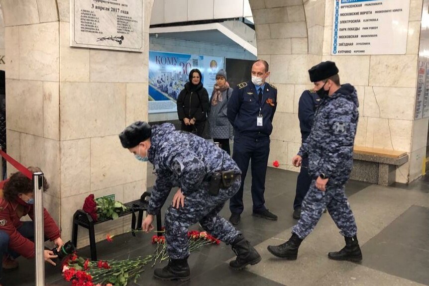Сотрудники и стажеры отдела вневедомственной охраны по Адмиралтейскому району Санкт-Петербурга возложили цветы к памятной доске, установленной в память о жертвах теракта в петербургском метрополитене.