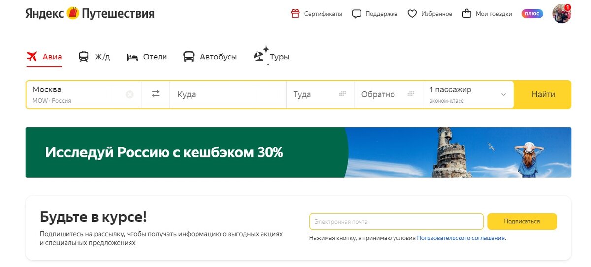 С главной страницы Яндекса можно перейти на вкладку Яндекс Путешествия. Значок сервиса - красный чемодан на желтом фоне - легко запоминается и узнаваем Ниже мы видим конструктор тура - под каждую вкладку отдельно: И ещё одно интересное предложение от сервиса Яндекс Путешествия - подарочный сертификат. Смотрится мило, можно выбрать номинал от двух до пятидесяти тысяч рублей, написать поздравление и тут же отправить в подарок. Срок действия сертификата - не менее 6 месяцев Если вы уже пользовались данным сервисом - напишите в комментариях, насколько остались довольны, как быстро со всем разобрались и насколько легко удалось найти нужный тур, отель или билет. Ну а чтобы определиться с направлением отдыха, читайте следующие материалы:
