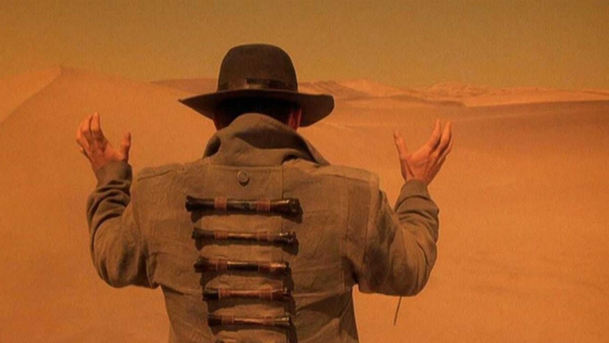 Dust Devil, 1992 Действия фильма происходят в Намибии после войны за её независимость. Казалось бы, темные времена закончились, но в самом деле из огня завершившегося конфликта восстало новое зло. Новое для независимой Намибии, но не новое для мира в целом. По пустыне бродит человек в шляпе, плаще и с сумкой, полной инструментов. Однако этот человек не плотник или механик. Он — убийца. Более того, он есть древнее зло, что охотится на сломленных и одиноких. Пустынный демон, что приходит к тем, кто был готов наложить на себя руки. В начале фильма демон совершает жуткое и кровавое деяние, что порождает ответные действия со стороны местных властей. Дело поручают чернокожему полицейскому Бену Макаробу, но этот парень пока ещё не знает, что столкнулся с чем-то большим нежели обычный псих, помешанный на мистике. Чтобы одолеть песчаного демона, Бену придется обратиться к местному колдуну, что отсылает зрителя к классической структуре мифа, как мне кажется. Смотрите: у нас есть герой (Бен Макар